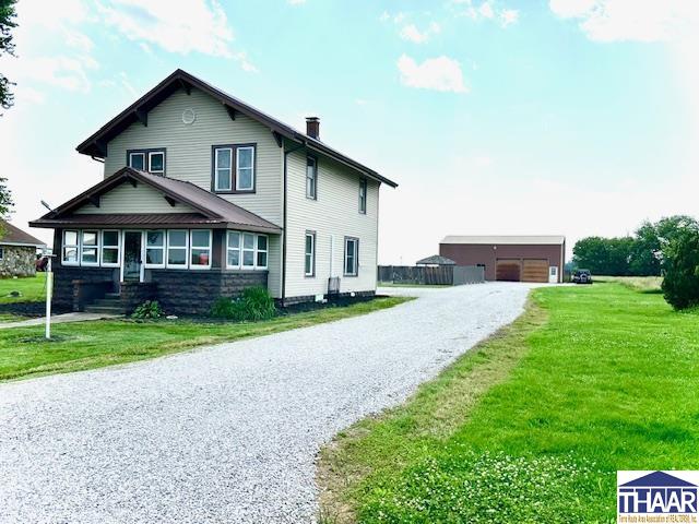 This is the perfect country property sitting on .85 of an acre in the heart of New Lebanon on a paved road. A 30x50x14 heated pole barn with concrete floor, foam insulation, electric, & a water hydrant inside is the perfect place to house your toys, work on projects, or hang with your friends. An in-ground pool w/ newer liner, pump & cover will be the hang out spot for friends & family this summer, so invite everyone over & have a BBQ & some fun! An enclosed front porch & new back deck complete the perfect outside package for enjoying all of the seasons. Inside boasts a large living room w/ original wood staircase, lots of original hardwood floors, good sized rooms, updated bathrooms, & a mud room. This one has it all including a metal roof that is only 3 years old. Schedule your showing today so you can enjoy the pool all summer!